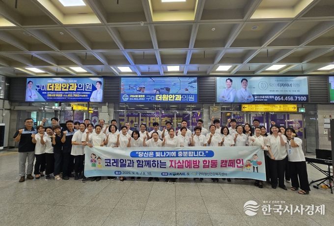 한국시사경제 윤경수 기자 | 구미시는 ‘자살예방의 날(9월 10일)’을 기념해 8일과 10일 이틀간 코레일 구미지역본부와 함께 구미역 대합실에서 철도 이용객 대상 자살 예방 합동 캠페인을 펼쳤다.