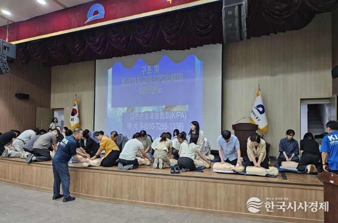 한국시사경제 윤경수 기자 | 부산 중구는 직원의 안전의식과 응급 대응능력 향상을 위해 지난 9일 중구청 대회의실에서 구청 직원(구의회, 동주민센터 포함) 42명을 대상으로 심폐소생술 등 응급처치 교육을 실시했다.