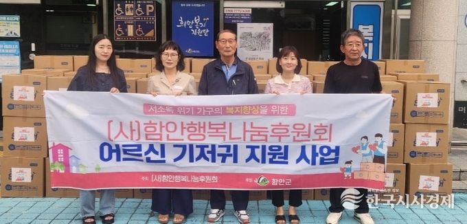 한국시사경제 경남취재본부 | 함안군은 지난 10일 (사)행복나눔후원회가 기저귀 지원이 필요한 차상위계층과 기초생활수급 어르신 90세대에 총 432만 원 상당의 기저귀 90박스를 기탁했다고 밝혔다.