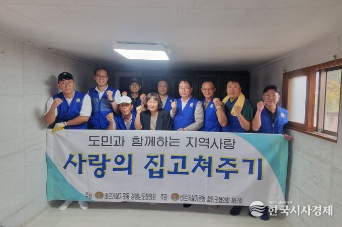 한국시사경제 경남취재본부 | 바르게살기운동 함안군협의회(회장 조용찬)는 지난 9일 청년회(회장 최봉섭)가 주관한 ‘사랑의 집 고쳐주기’ 봉사활동에 참여했다. 회원들은 칠북면의 저소득 독거노인 가구를 방문해 노후 주택을 정비하며 주거환경 개선에 힘을 보탰다.