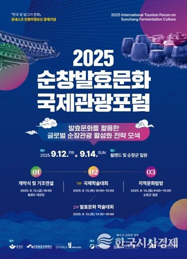 한국시사경제 윤경수 기자 | (재)순창발효관광재단이 오는 9월 12일부터 14일까지 3일간 전북 순창군 일원에서‘2025 순창 발효문화 국제관광포럼’을 개최한다.