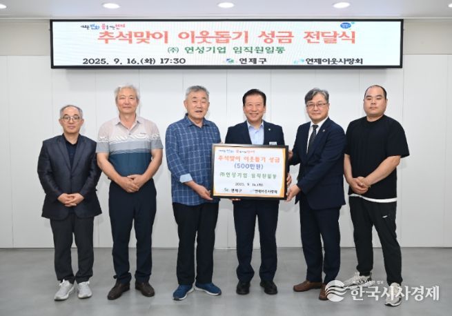 한국시사경제 김숙영 기자 | 연제구는 9월 16일 추석 명절을 맞아 (주)연성기업(대표 조승배)으로부터 저소득 세대를 위한 이웃돕기 성금 500만 원을 전달받았다.