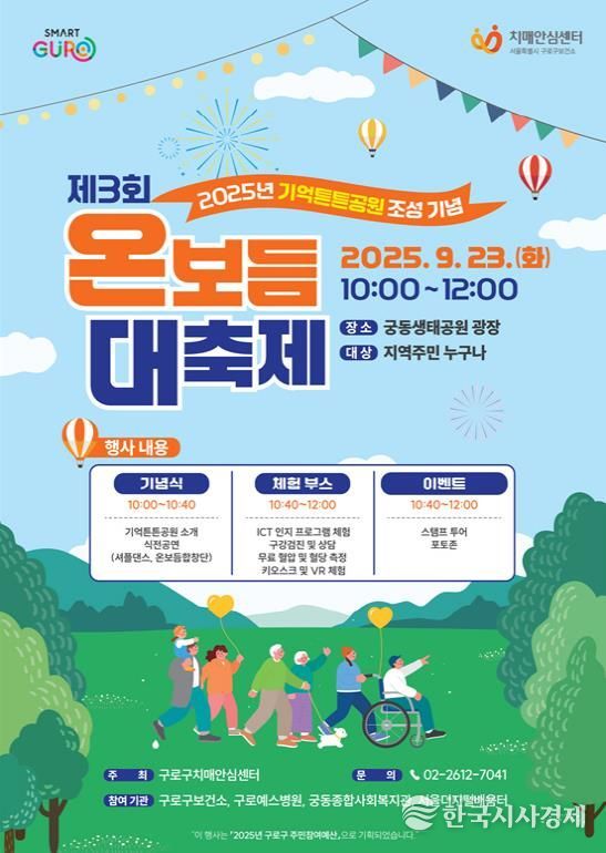 장인홍 구로구청장은 “온보듬 대축제는 치매에 대한 인식을 개선하고 세대가 함께 어울릴 수 있는 공동체적 분위기를 만드는 축제”라며 “앞으로도 주민 참여형 치매 친화 환경을 지속적으로 확산해 나가겠다”고 말했다.