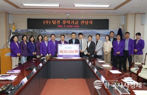 한국시사경제 전남취재본부 | 지역 인재 양성을 위한 기업의 뜻깊은 나눔이 이어지고 있다. ㈜탑선(대표 윤정택)이 18일 신안군장학재단(이사장 김대인)에 지역 학생들의 밝은 미래를 지원하기 위한 장학기금 1억 원을 쾌척했다.