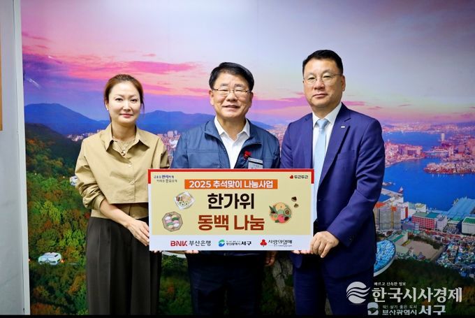 한국시사경제 김숙영 기자 | BNK금융그룹(부산은행) 희망나눔재단은 취약계층 주민들을 위한 2025 추석맞이 동백萬開 나눔 사업의 일환으로 9월 18일, 서구에 동백전 부산관광상품권 선불카드 430장(2,150만 원 상당)을 기탁했다.