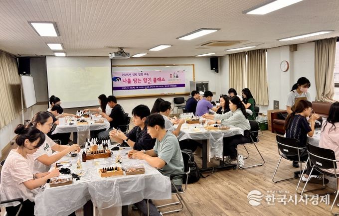 이번 교육은 개인의 MBTI 성향에 맞는 향을 찾아 나만의 시그니처 향수를 제작하고, 천연 재료를 활용해 천연 샴푸바를 만들어보는 체험형 프로그램으로 진행됐다.