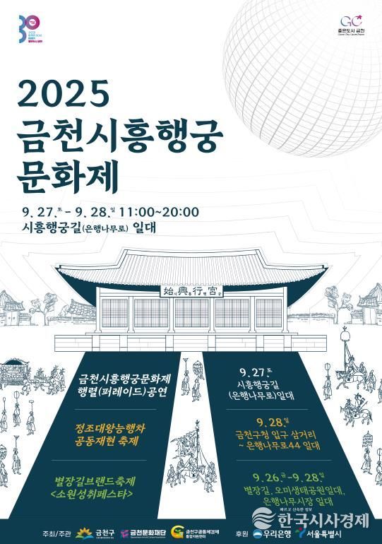 한국시사경제 김숙영 기자 | 금천구와 금천문화재단은 27일과 28일 양일간 금천구 은행나무로 일대에서 ‘2025 금천시흥행궁문화제’를 개최한다고 밝혔다. 인근에서 하루 전날인 26일부터 지역 대표 축제인 ‘2025 별장길 브랜드 축제(부제: 소원성취페스타 소·성·페)‘도 열려 축제의 한마당이 펼쳐질 것이라고 구는 설명했다.