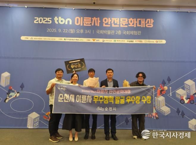 한국시사경제 전남취재본부 | 순천시는 지난 22일 서울 국회박물관에서 열린 '2025 tbn 이륜차 안전문화대상' 시상식에서 이륜차 우수정책 발굴 부문 우수상을 수상했다고 밝혔다.