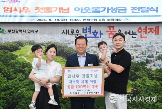 한국시사경제 김숙영 기자 | 연제구는 9월 19일 첫돌아기 엄시우로부터 저소득 아동을 위한 성금 100만 원을 전달받았다.