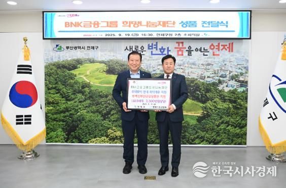 한국시사경제 김숙영 기자 | 연제구는 9월 19일 BNK금융그룹 희망나눔재단으로부터 저소득 취약계층을 위한 동백전 선불카드(부산지역화폐 2,300만 원 상당)를 기탁받았다.