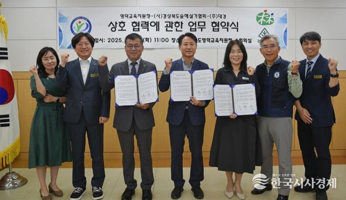 한국시사경제 김숙영 기자 | 영덕교육지원청은 9월 23일 (사)경상북도숲해설가협회, ㈜대경과 청소년 및 교육가족 복지향상을 위한 업무협약을 체결했다.
