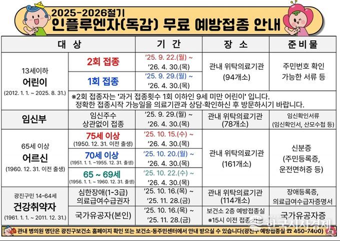 한국시사경제 윤경수 기자 | 광진구는 겨울철 호흡기 감염병 확산을 예방하고 구민 건강을 보호하기 위해 인플루엔자 무료 예방접종을 실시한다.