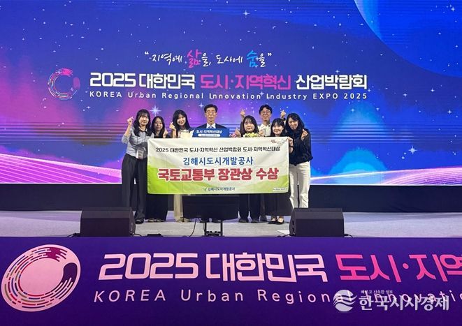 한국시사경제 윤경수 기자 | 김해시도시개발공사는 지난 24일 '2025 대한민국 도시·지역혁신 산업박람회'에서 도시·지역혁신대상 도시환경·경관 분야 국토교통부 장관상을 수상했다고 밝혔다.