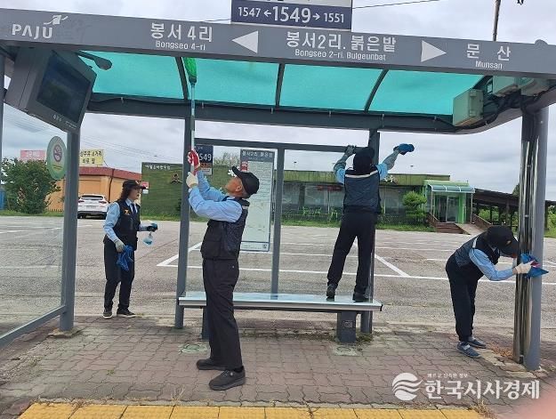 한국시사경제 경기북부취재본부 | 파주시 파주읍 실버경찰대는 추석을 앞두고 9월 한 달간 관내 버스승강장 대대적인 환경정화 활동을 펼쳤다.