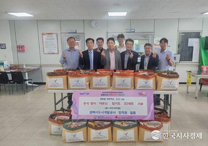 한국시사경제 노승선 기자 | (재)김해시복지재단은 지난 1일, 김해시도시개발공사와 함께 추석을 맞아 재가결식 및 취약계층 어르신을 위한 밀키트(금150만원 상당) 전달식을 진행했다고 밝혔다.