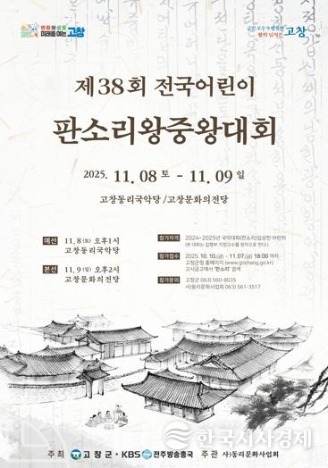 한국시사경제 전북취재본부 | 전북 고창군이 올해의 어린이 판소리 왕중왕을 가리는 ‘제38회 전국 어린이판소리왕중왕대회’ 참가자를 오는 11월7일까지 모집한다.