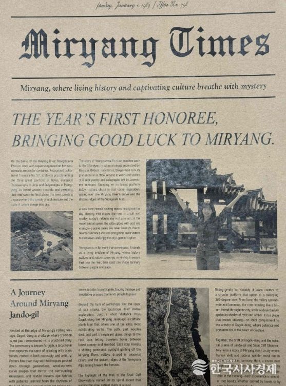 이경숙 관광진흥과장은 “신문 속 주인공이 되는 특별한 경험을 통해 관광객이 밀양의 매력을 새롭게 느끼고, 다시 방문하고 싶은 도시로 기억되길 바란다”라고 말했다.