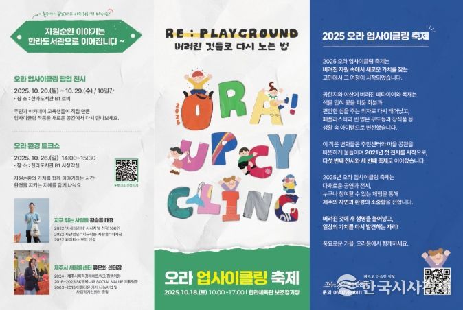 한국시사경제 노승선 기자 | 제주시 오라동은 10월 18일 오전 10시 한라체육관 보조경기장 일원에서 ‘2025 오라업사이클링축제’를 개최한다.