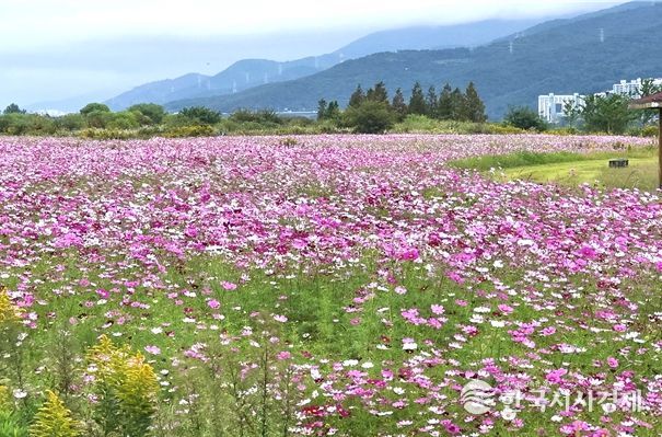 한국시사경제 노승선 기자 | 김해 대동생태체육공원이 가을 정취 가득한 코스모스로 장관을 이루며 시민들과 관광객들에게 큰 인기를 끌고 있다.