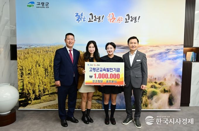 고령군(군수 이남철)은 지역교육 활성화를 위하여 선뜻 큰 금액을 기탁해주신 코코찜닭 김현진 대표님과 공주분식 이선희 대표님께 고마움을 표하고 “어려운 경제여건 속에서도 교육발전을 위해 기탁해주셔서 깊이 감사드린다.”며 “앞으로 기부문화가 더욱 활성화되어 서로 돕는 따뜻한 지역 분위기를 조성하고, 모두가 함께 성장할 수 있는 고령을 만들어 나가도록 노력하겠다.”고 전했다.