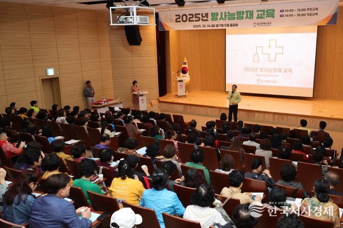 한국시사경제 울산취재본부 | 울산 동구는 10월 14일 동구청 5층 중강당에서 지역 주민과 공무원 300여명을 대상으로 방사능 방재 교육을 했다.