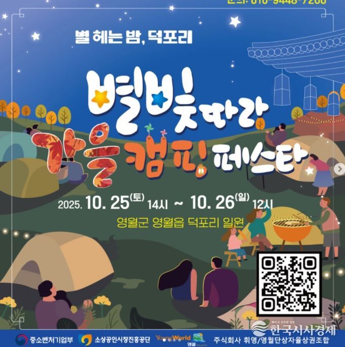 영월군에서 동네상권발전소와 지역상권활력지원사업을 주관하고 있는 주식회사 휘영 관계자는 “이번 ‘별빛따라 가을 캠핑 페스타’는 단순한 축제를 넘어, 캠퍼들에게는 영월의 아름다운 자연 속 잊지 못할 추억을 선사하고, 덕포리 소상공인에게는 새로운 활력을 불어넣기 위해 기획됐다”라며, “참가비 전액을 지역 상품권으로 돌려드리는 만큼, 많은 분이 부담 없이 찾아오셔서 영월의 깊은 가을을 만끽하고 지역 상생의 소중한 가치도 함께 경험해 보시길 바란다”라고 전했다.