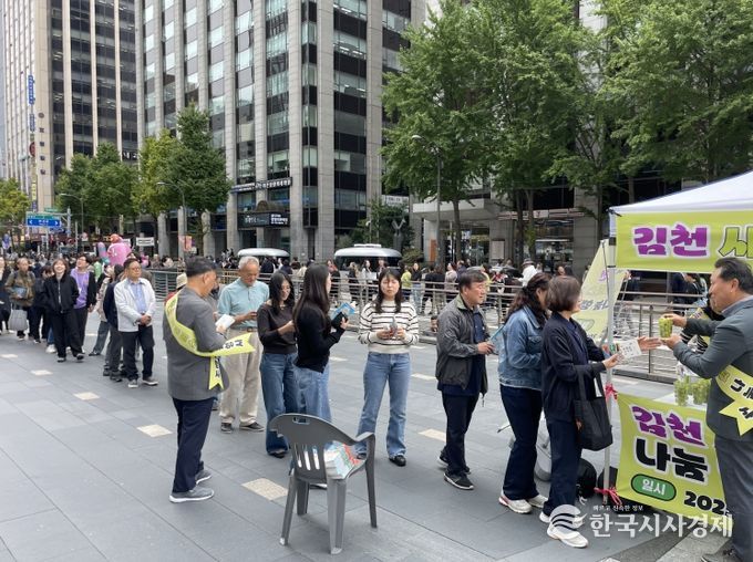 한국시사경제 권충언 기자 | 김천시 서울사무소는 10월 14일 서울 청계광장에서 김천의 대표 고품질 과일인 샤인머스켓의 우수성을 널리 알리기 위한 '김천 샤인머스켓 나눔행사'를 개최했다.