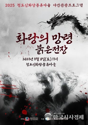 한국시사경제 노승선 기자 | 청도우리정신문화재단(대표이사 기화서)은 오는 11월 8일 오후 5시부터 밤 9시까지, 청도신화랑풍류마을에서 2025 야간관광 프로그램 '화랑의 망령: 붉은전장' 이색 공포체험 프로그램을 운영한다.