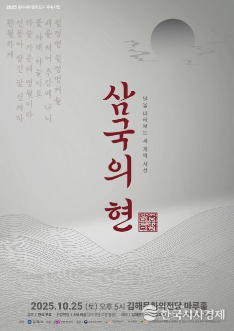 한국시사경제 노승선 기자 | (재)김해문화관광재단 김해문화의전당은 2025 동아시아문화도시 후속 사업 특별공연 '삼국의 현(絃) – 달을 바라보는 세 개의 시선'을 오는 25일 오후 5시 김해문화의전당 마루홀에서 선보인다.