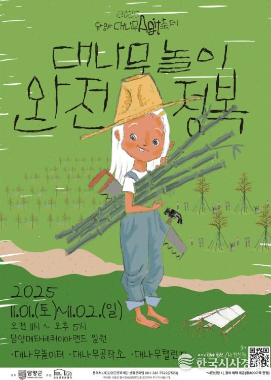 한국시사경제 권충언 기자 | 담양군문화재단은 11월 1일부터 2일까지 이틀간 담양 메타세쿼이아랜드 일대에서 전 세대를 위한 참여형 문화예술교육축제, '2025 담양대나무아지트축제:대나무놀이X완전정복'을 개최한다고 밝혔다.