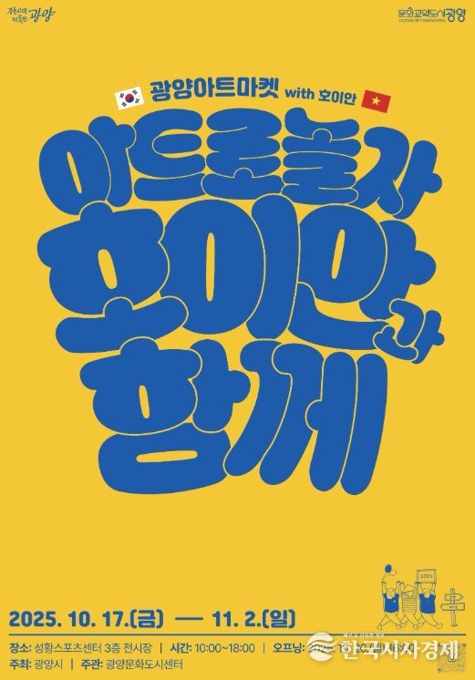 한국시사경제 권충언 기자 | 광양문화도시센터는 오는 10월 17일부터 11월 2일까지 성황스포츠센터 다목적체육관 3층 대회운영본부와 로비에서 ‘광양아트마켓 위드 호이안(with Hoi An) 아트로 놀자! 호이안과 함께!’ 행사를 개최한다고 밝혔다.