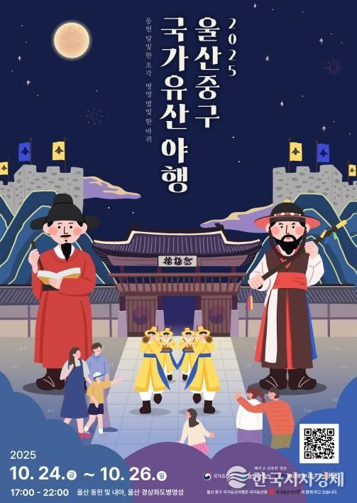 한국시사경제 울산취재본부 | 울산 중구가 오는 10월 24일부터 10월 26일까지 사흘 동안 울산 동헌 및 내아, 성남동 문화의거리, 울산 경상좌도병영성 일원에서 ‘2025 울산 중구 국가유산 야행’ 행사를 개최한다.