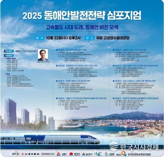 한국시사경제 권충언 기자 | 동해시는 오는 10월 22일 오후 2시, 국회 고성연수원 대강당에서 고속철도 시대 도래에 따른 동해안 발전전략 심포지엄에 참석하여 동해안 6개 시군과 공동으로 ‘고속철도 시대, 동해안의 상생 발전을 위한 전략’을 모색한다.