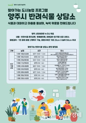 한국시사경제 경기북부취재본부 | 양주시가 시민들의 정서적 치유와 녹색생활 실천을 돕기 위해 10월 29일까지 ‘찾아가는 반려식물 상담서비스’를 운영한다.