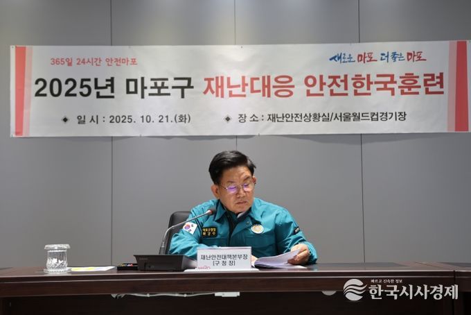 한국시사경제 노승선 기자 | 마포구는 10월 21일 오후 2시, 재난안전상황실과 서울월드컵경기장 서문 일대에서 ‘2025년 재난대응 안전한국훈련’을 실시했다.