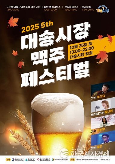 한국시사경제 울산취재본부 | 울산 동구는 오는 10월 25일 토요일 오후 1시부터 오후 10시까지 대송시장 일원에서 ‘10월 대송시장 맥주 페스티벌’을 개최한다고 밝혔다.