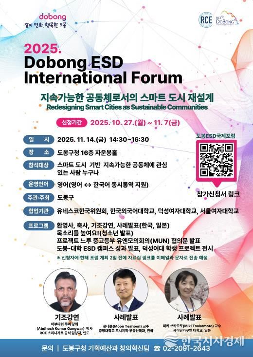 한국시사경제 이정이 기자 | 서울 도봉구가 오는 11월 14일 도봉구청 16층 자운봉홀에서 ‘2025 도봉 ESD(지속가능발전교육) 국제포럼’을 개최한다.