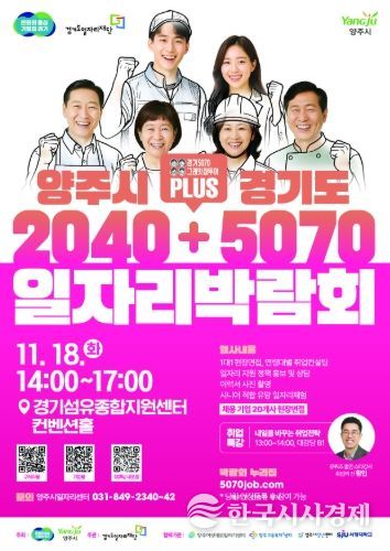 한국시사경제 경기북부취재본부 | 양주시가 경기도 및 경기도일자리재단과 함께 오는 11월 18일, 경기섬유종합지원센터 컨벤션홀에서 '양주시+경기도 2040+5070 일자리박람회'를 개최한다.