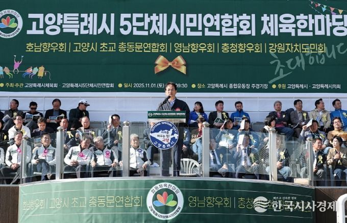 한국시사경제 윤광희 기자 | 이동환 고양특례시장이 1일 고양종합운동장에서 열린 ‘고양특례시 5단체시민연합회 체육한마당’ 개회식에 참석해 축사했다.
