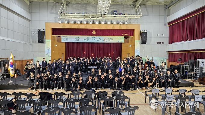 한국시사경제 세종취재분부 | 세종특별자치시교육청은 11월 4일에 금호중학교 다목적강당에서 금호중학교(교장 강승연, 이하 금호중)의 ‘금호윈드오케스트라’(지도교사 조현영, 지휘자 연춘흠)와 연서중학교(교장 유효종)의 ‘연서오케스트라’(지도교사 이은정, 지휘자 김채연)가 함께 만드는 ‘2025 세종예술온(ON)학교’ 예술학교 ‘세종 학생 음악 나눔 축제’를 성황리에 마쳤다.