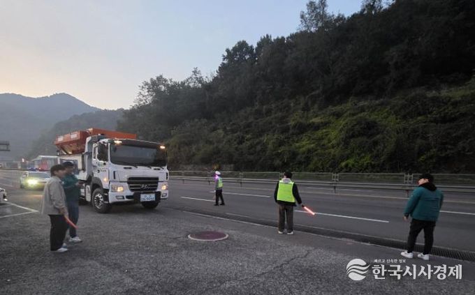 한국시사경제 경남취재본부 | 함안군은 지난 5일 새벽 6시 30분부터 7시 30분까지 국지도 30호선 신당고개 구간에서 ‘2025년 겨울철 대설 대응 현장훈련’을 실시했다고 밝혔다.