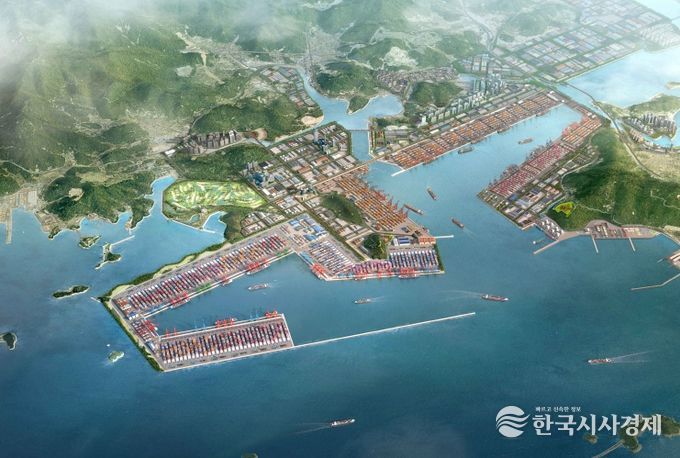 진해신항은 2040년까지 총 14조 6,600억 원을 투입해 8,000TEU급 초대형 컨테이너선 21선석을 갖춘 대규모 항만으로 조성된다.