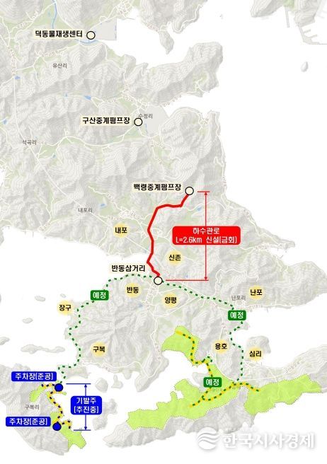 한국시사경제 노승선 기자 | 창원특례시는 금회 사업비 36억 원으로 구산면 심리 일원에 하수관로(L=2.6km) 설치하여 관광단지 및 인근 마을에서 발생하는 오수를 덕동물재생센터에서 처리하도록 하는 구산해양관광단지 공공기반시설(하수도) 설치사업을 추진할 계획이다.