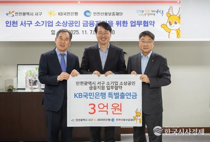 한국시사경제 경제팀 | 인천 서구는 지난 7일 국민은행, 인천신용보증재단과 함께 45억원 규모의 ‘소기업·소상공인을 위한 금융지원 협약보증’ 업무 협약을 체결했다고 밝혔다.