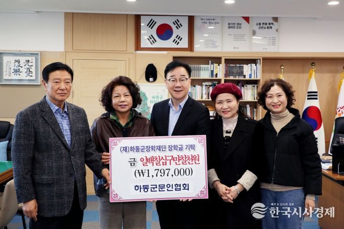 한편, 하동군문인협회는 지역문화 진흥과 예술 문화 확산을 위해 문학 강연회, 시낭송회, 작품 전시 등 다양한 행사를 통해 군민과 소통하며 활발히 활동하고 있다. 이번 장학기금 기탁은 지역사회 예술인들이 나눔을 통해 지역의 미래를 응원하는 아름다운 실천의 귀감이 되고 있다.