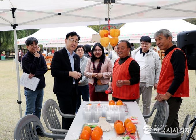 한국시사경제 경남취재본부 | 지난 11월 8일과 9일에 하동군 악양면 동정호 일원에서 “악양대봉감장터”가 성황리에 열렸다. 악양면에서 농사짓는 34개 농가가 직거래 판매자로 장터에 참여했다. 이틀 동안 1700여 명이 다녀가고, 약 2500만 원 상당의 대봉감과 농특산물이 팔렸다.