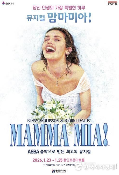 한국시사경제 이정이 기자 | 용인문화재단은 오는 2026년 1월 23일부터 25일까지 뮤지컬 ‘맘마미아!’를 용인포은아트홀에서 개최한다고 밝혔다. 관람 연령은 초등학생 이상으로, 겨울방학 기간 가족·친구·연인 등 남녀노소 누구나 함께 즐길 수 있는 대표 뮤지컬을 3일간 총 4회에 걸쳐 선보인다.