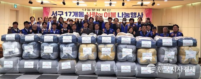 한국시사경제 문화팀 | 바르게살기운동대구서구협의회(회장 김윤조)는 지난 27일 10시 30분, 관내 취약계층을 위해 서구 17개 동에 ‘사랑의 이불’을 전달했다고 밝혔다.