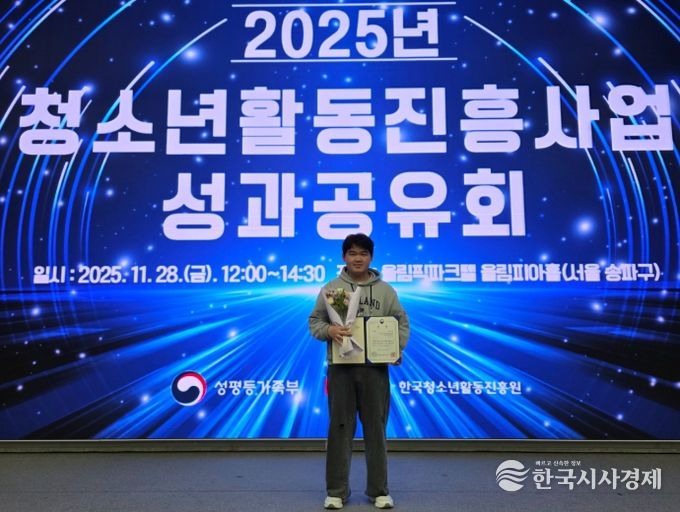 한국시사경제 전남취재본부 | 순천시는 지난 28일 서울특별시 올림픽파크텔에서 열린 2025년 청소년활동진흥사업 통합 성과공유회에서 순천시청소년문화의집 방과후아카데미를 수료한 왕윤성 학생이 『2025년 청소년방과후아카데미 활동수기 공모전』 일반부문에서 성평등가족부 장관상(대상)을 수상하는 쾌거를 이뤘다고 밝혔다.