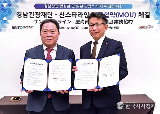 한국시사경제 문화팀 | 경남관광재단은 12월 2일 창원컨벤션센터에서 팬스타그룹 일본 현지법인인 ‘산스타라인(SANSTAR LINE)’과 ‘경남 관광 활성화 및 일본 관광객 유치 확대’를 위한 업무협약(MOU)을 체결했다고 밝혔다.